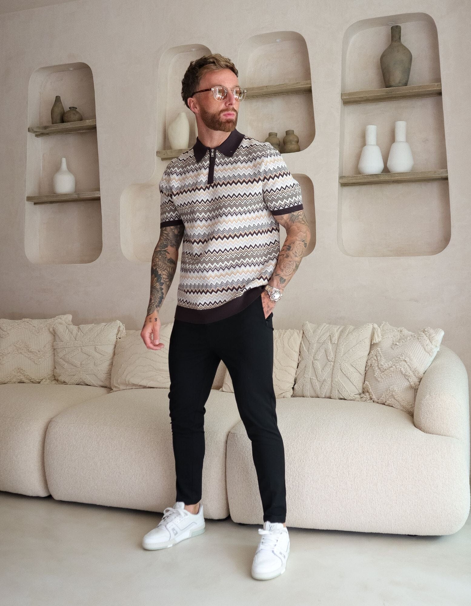 Our Zip Polo is a knitted top that features a branded zip and metal bar, adding that little bit of luxury, amongst its soft hand feel, stretch and style this looks smart throughout any day or night.